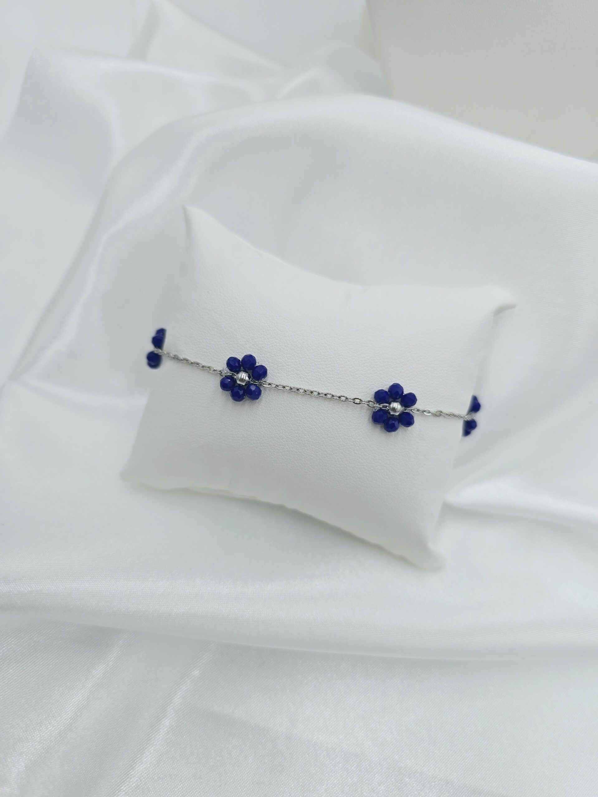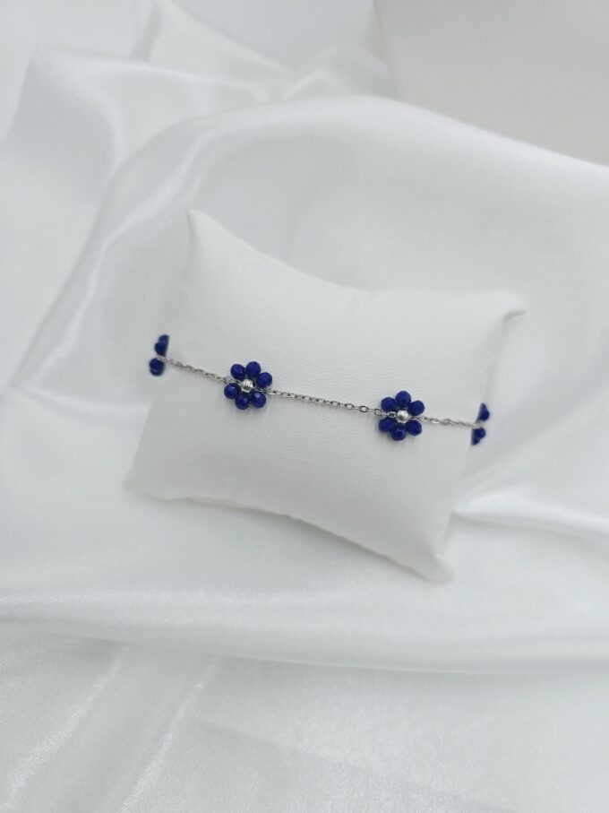 - Naszyjnik typu choker: Ozdobiony kwiatkami w głębokim granatowym odcieniu, które przyciągają uwagę i dodają całości romantycznego charakteru.